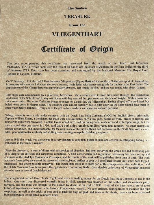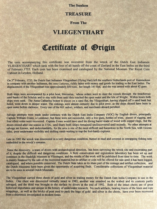 Vliegenthart Shipwreck 1734 Silver Ducaton